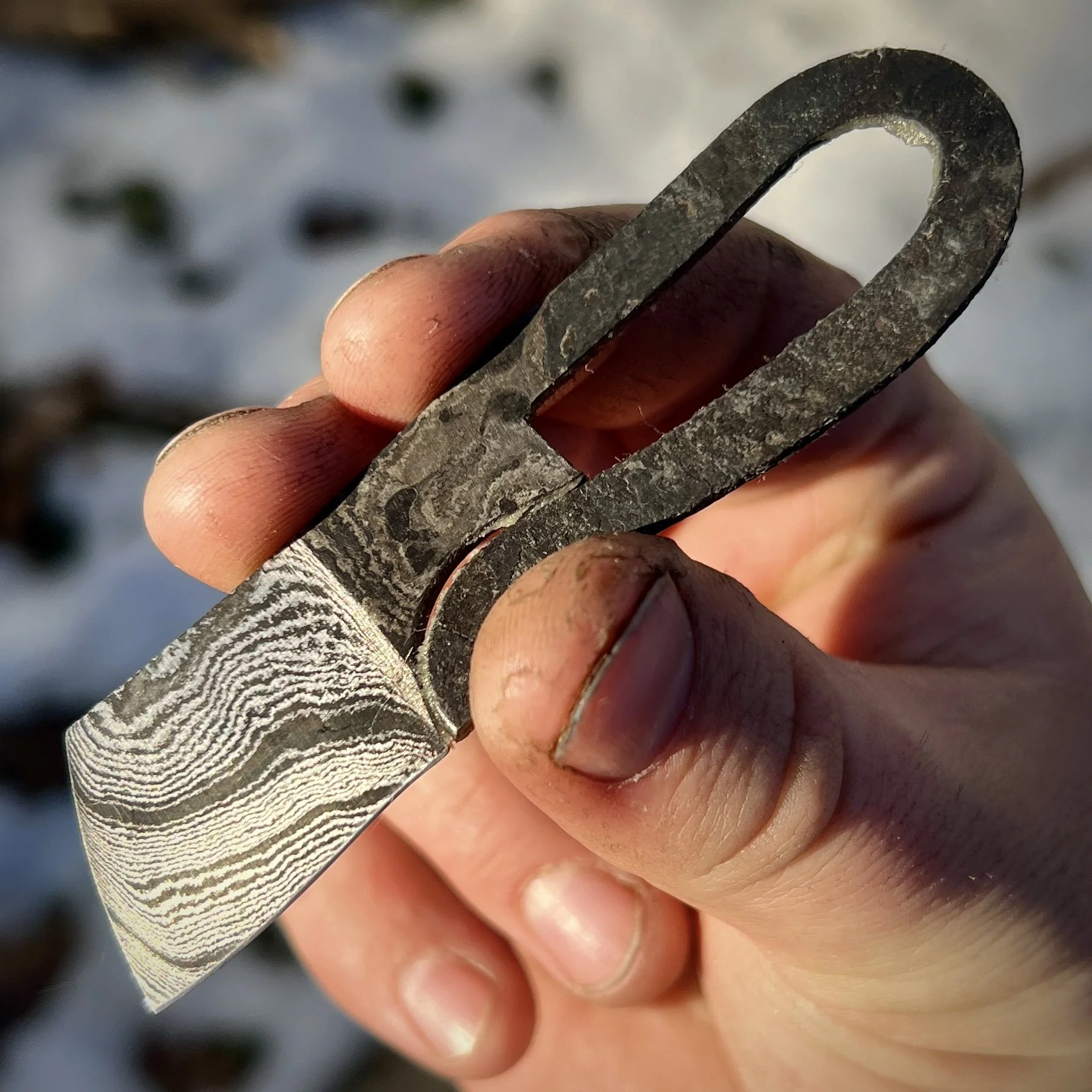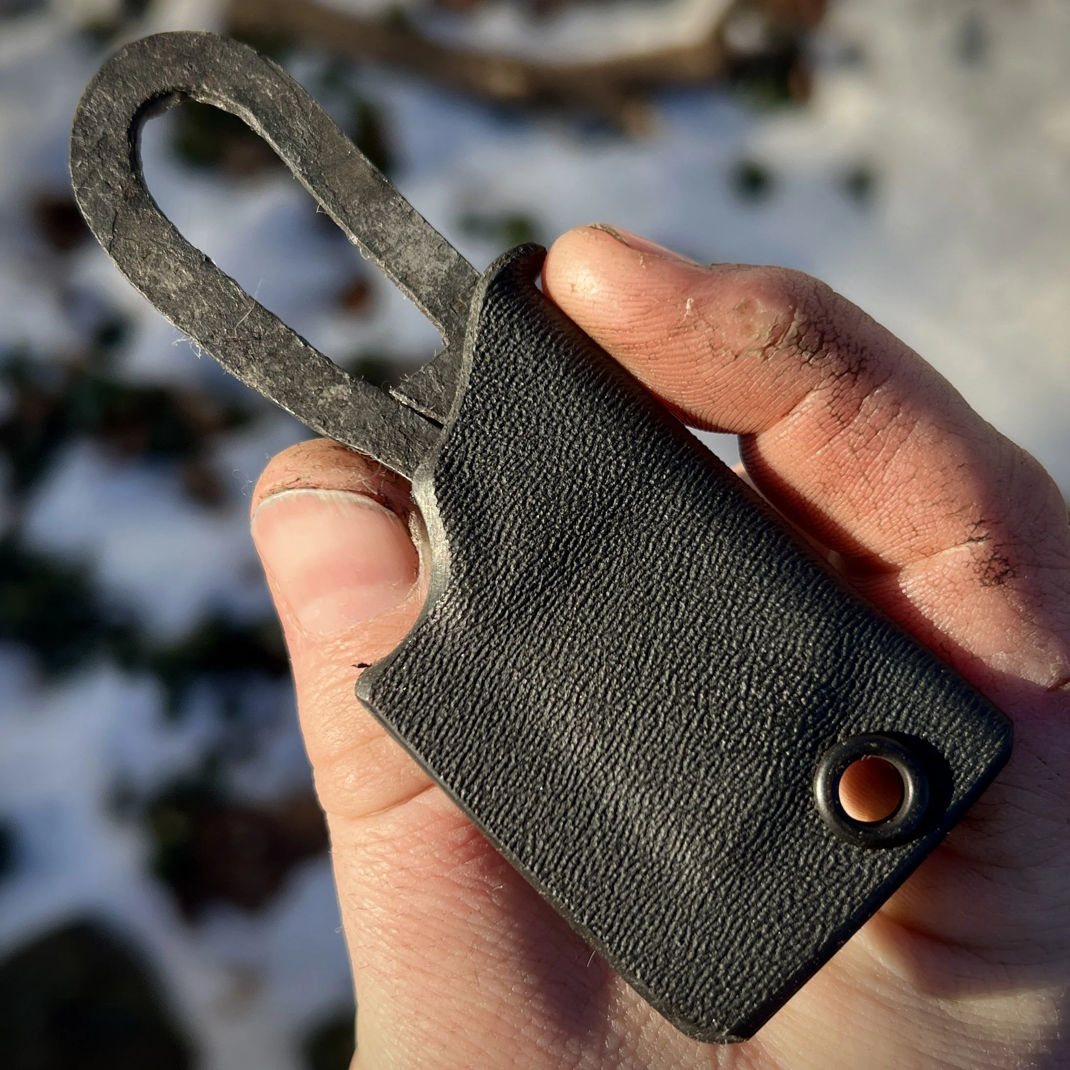 Shop › Blacksmith’s Neck Cleaver Mini Image 1 of 4 Image 2 of 4 Image 3 of 4 Image 4 of 4 Blacksmith’s Neck Cleaver Mini $100.00 Steel - Damascus Sheath - necklace kydexBlade length - 1.125 inchOverall length - 3.75 inches Add To Cart Added! Steel - Damascus Sheath - necklace kydexBlade length - 1.125 inchOverall length - 3.75 inches